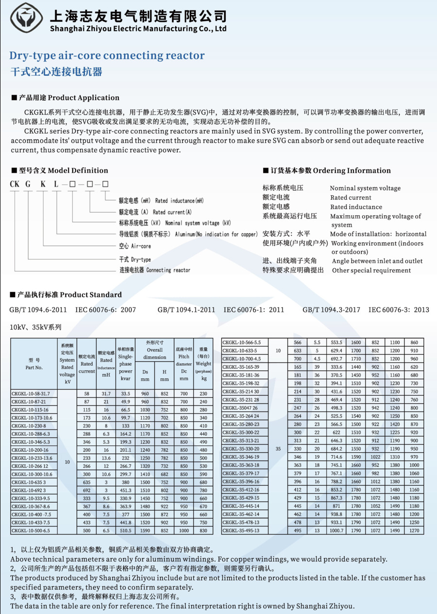 空心連接電抗器